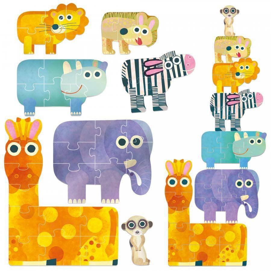 مجموعة استثنائية من 7 ألغاز كبيرة الحجم تنمو مع قدرات طفلك! ابدأوا برحلة التعلم مع “السرقاط” الصغير (قطعتين) وتدرجوا حتى الوصول إلى “الزرافة” الشامخة (10 قطع). تصميم إيطالي فاخر من مواد مستدامة (ECOPLAY)، يطور المهارات الحركية الدقيقة ومفاهيم الحجم للأطفال من جيل 2-5 سنوات.